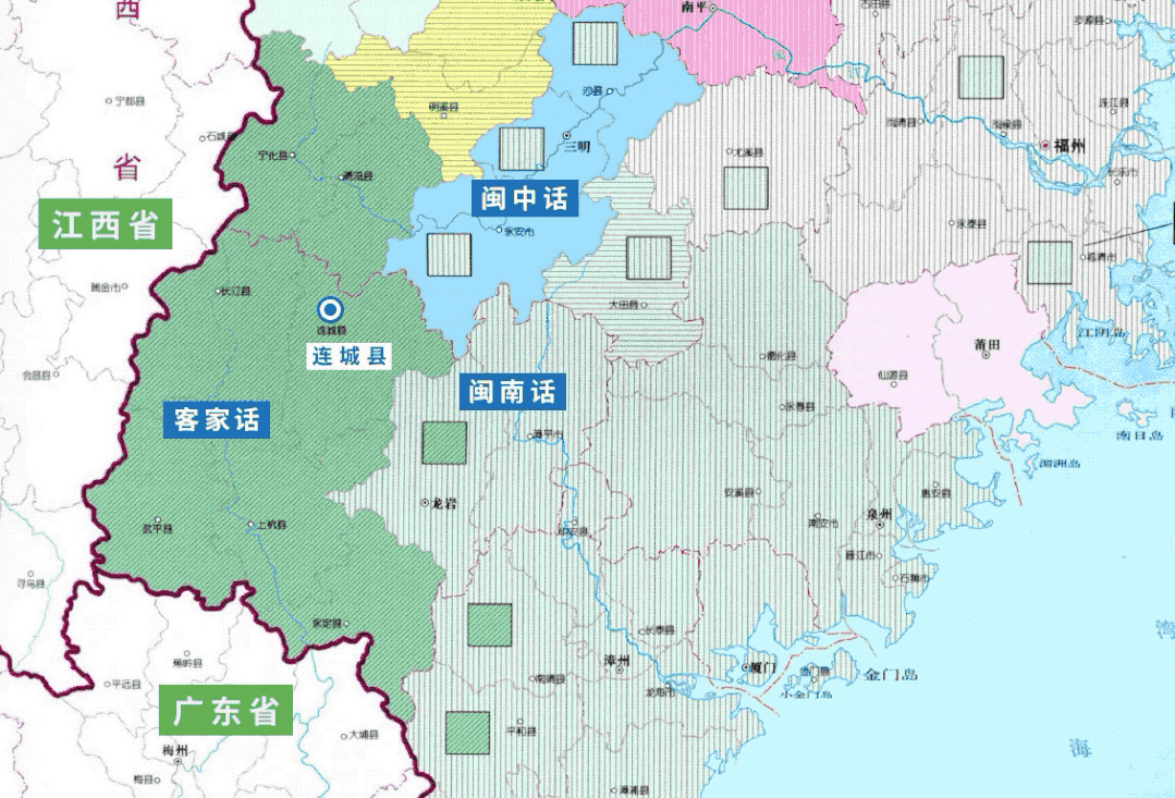 闽西地区位于福建西部,靠近江西、广东。在实地调查阶段,严教授先到闽西地区的连城县调查了四个地点。连城东边是永安、沙县,属于闽中方言区。东南是漳平、龙岩,人们主要使用闽南话。西边的长汀、武平、上杭主要的通行方言是闽西客家话。这些客家话互相可以通话,但却不能跟连城通话。连城跟东边县城不能通话,连城内部也不能通话。严教授举了一个生动的例子来说明连城的方言有多么复杂:连城同乡的大学同学和彼此交流,用当地方言行不通,只能用普通话来交流。