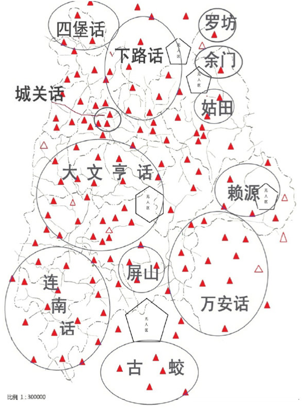 传统自然经济的条件下,方言的差异跟乡村相关联,出了村子,人们即使听得懂彼此的口音,但他们所讲的方言口音已经出现差异了。在这种情况下,如果方言调查的调研点设置得太稀疏,方言调查的全面性和准确性就会降低。严修鸿用连城北部的北团镇来举例说明。1995年,他只调查了罗王村,用这一个调研点来代表整个北团镇的方言。同样以“有”字为例。罗王村叫“u”,可是附近其他村子有叫“you”的、有叫“hai”的、还有叫“hao”的。虽然村民彼此之间听得懂,但两个村子中的人说话的口音已经产生了差异。