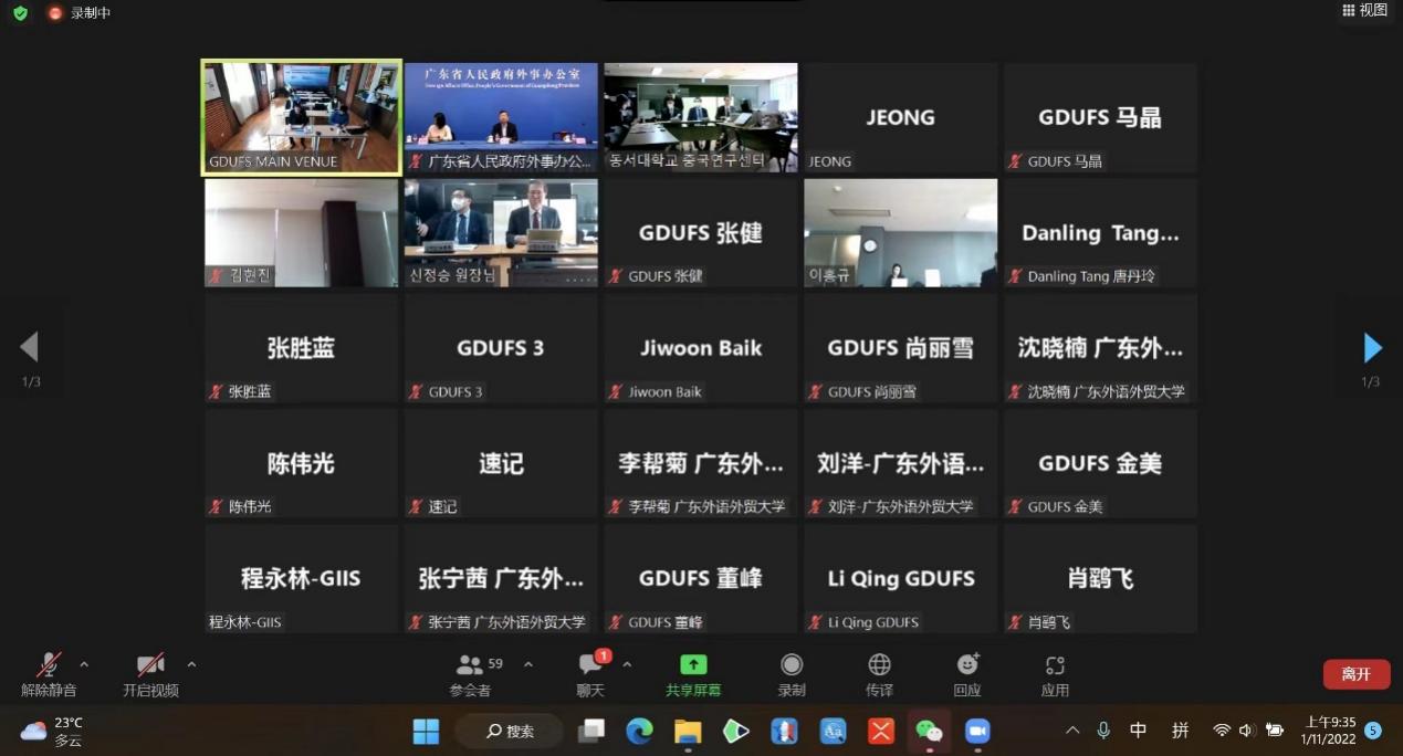 本网讯 近日,在广东省人民政府外事办公室、中国驻釜山总领事馆、中新广州知识城开发建设办公室和广东外语外贸大学黄埔研究院的支持下,由广东外语外贸大学广东国际战略研究院和韩国东西大学联合主办的第四届21世纪海上丝绸之路-新南方政策合作研讨会在中国、韩国两地成功召开。广东省政府外事办公室主任柳琛子、广东国际战略研究院常务副院长隋广军,韩国前驻华大使、东西大学东亚研究院院长辛正承,中国驻釜山总领事陈日彪、釜山市国际关系大使申载铉出席论坛并致辞,来自中韩两国知名专家学者参会发言,共同探讨“深化中韩地方合作,助力两国关系新发展”。