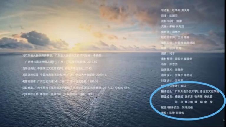 团队由日语语言文化学院杨晓辉、陈多友、张秀强、李志颖、冈泽成俊五名教师和周伟、焦子鹏、谭柳、俞莹四名学生组成,先后承担本次活动宣传视频“广州:海阔天空之城”的字幕翻译和配音工作,以及多位中方嘉宾致辞的日文稿件翻译工作。此次翻译任务时间紧、难度高,翻译团队成员们以严谨的态度和过硬的专业水平,赢得委托方的好评。