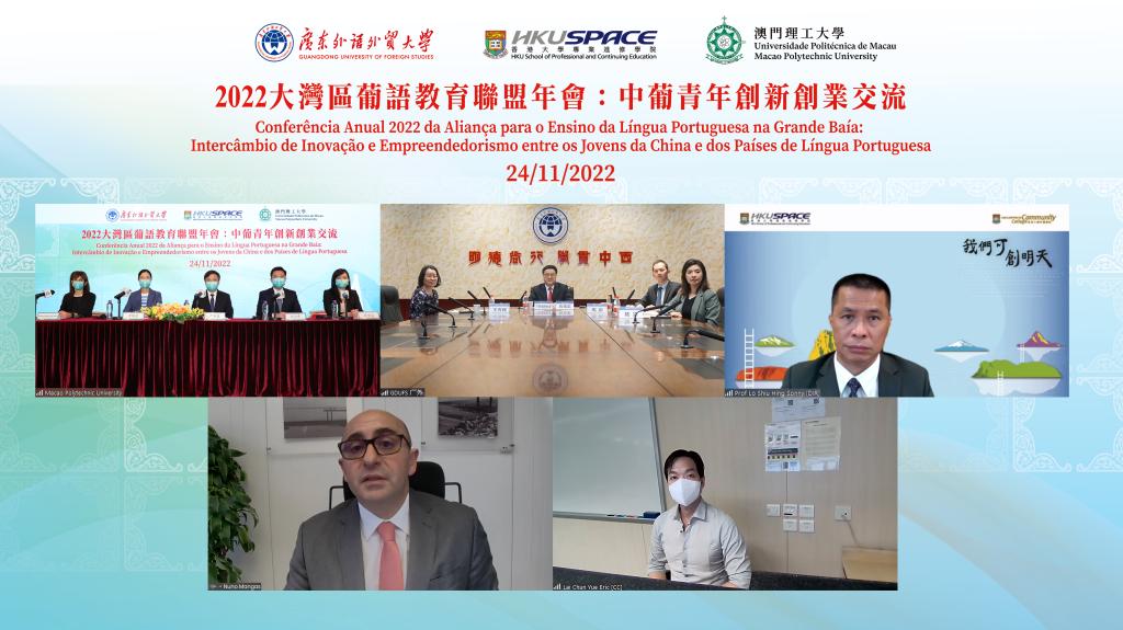 本网讯 11月24日,我校与香港大学专业进修学院、澳门理工大学相聚云端,举行2022大湾区葡语教育联盟年会。此次年会以“中葡青年创新创业交流”为主题,由澳门理工大学承办。我校党委书记、校长石佑启出席会议并致辞。