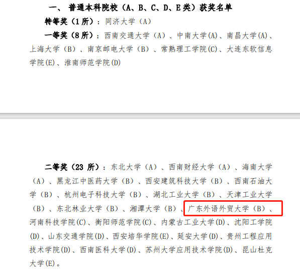 据悉本次联盟开展的“不同类型高校质量保障体系检核优秀范例选树”活动共有80所国内高校提交了申报案例,65所高校入围评选,普通本科院校中,1所高校获得特等奖,8所高校获得一等奖,23所高校获得二等奖,18所高校获得提名奖。
