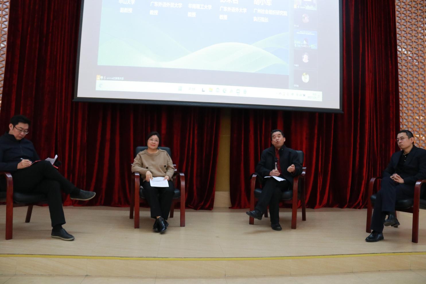 圆桌对话环节,文宏、中山大学副教授周如南、广州社会组织研究院副研究员胡小军、我校公管学院教授彭未名、吴月等专家学者围绕“共建共治共享社会治理格局营造与‘双区’建设”主题展开成果交流和经验分享。专题报告环节,与会专家学者围绕“城乡治理现代化”“社区治理与乡村振兴”两大专题展开热烈讨论和深入交流。专题环节分别由我校公管学院院长涂斌和副院长陈胜主持,吴月担任评议嘉宾。