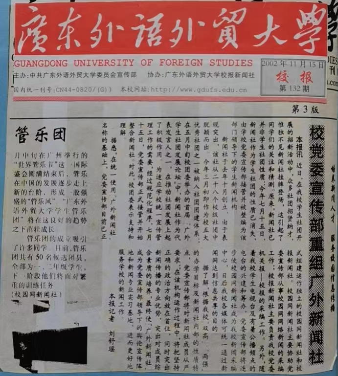2002年宣传部重组广外新闻社的报道