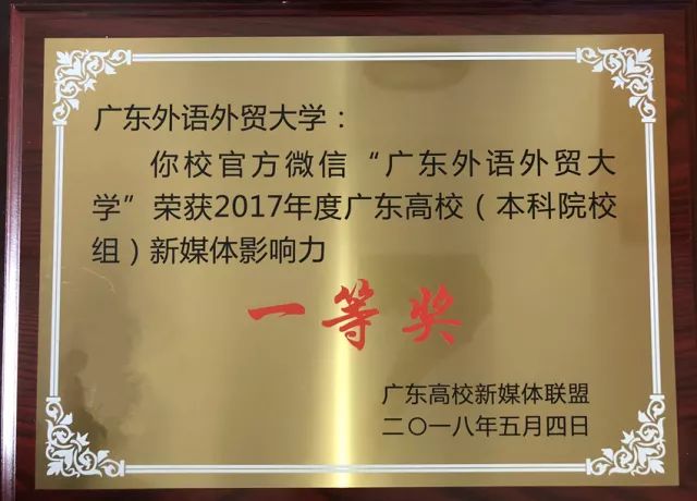 官微获2017年广东高校(本科院校组)新媒体影响力一等奖