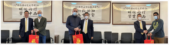 西语学院外教石雷副教授、李强迪博士、经贸学院外教丹尼斯副教授等参加座谈会,与会专家对上级部门的慰问关心表示感谢。