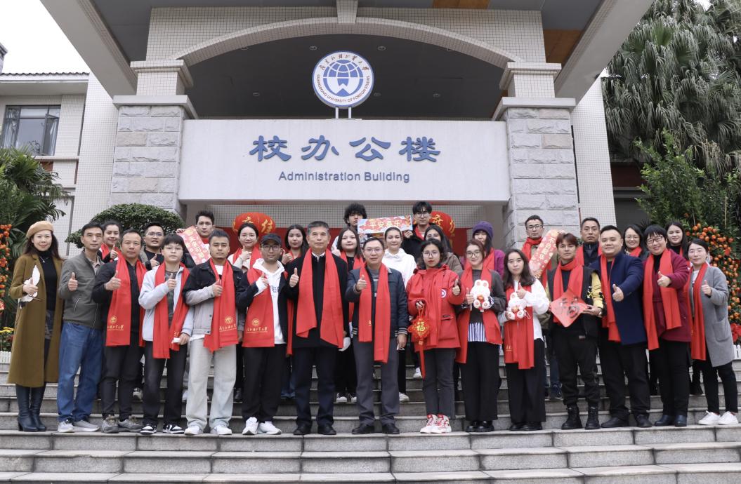 本网讯 临近2023年新春,1月16日下午,广东省委教育工委副书记、广东省教育厅党组副书记李大胜一行来到我校,亲切看望慰问假期留校的新疆籍学生和少数民族专职辅导员,并送上新年祝福和节日问候。副校长刘海春主持座谈会,党办校办、学工部、保卫部等相关部门负责人,少数民族专职辅导员及留校新疆籍学生参加了座谈会。