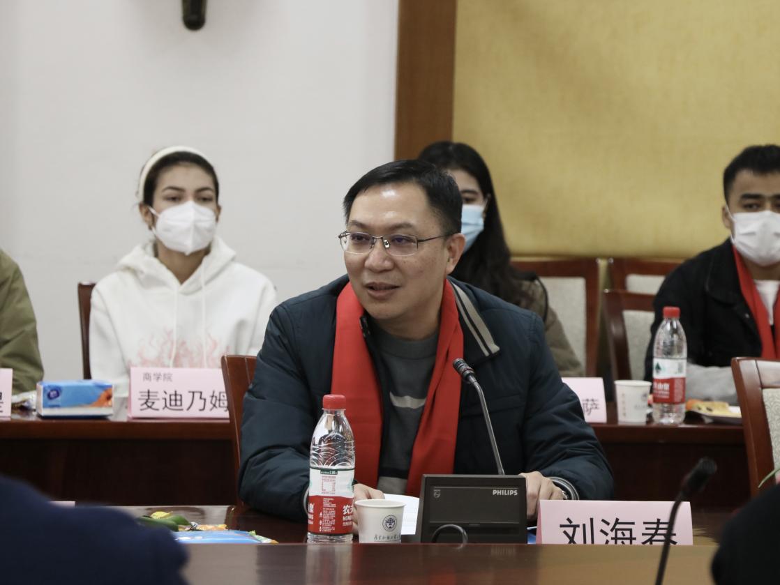 李大胜充分肯定我校新疆籍学生教育管理工作,并强调学校要不断优化新疆籍学生教育管理服务工作,持续深化爱国主义教育和中华民族共同体意识教育,让中华民族共同体意识根植学生心灵深处。希望老师们不忘立德树人初心,提升教书育人本领,加强对学生政治引领和思想引导,培养好社会主义合格建设者和可靠接班人;勉励同学们牢记习近平总书记殷殷重托,深入学习体悟党的二十大精神,坚定不移听党话、跟党走,认真学习党的创新理论,做习近平新时代中国特色社会主义思想的坚定信仰者和忠实实践者;铸牢中华民族共同体意识,做祖国统一和民族团结的忠诚捍卫者和坚定维护者;以奋斗姿态激扬青春,做走在时代前列的奋进者、开拓者、奉献者。