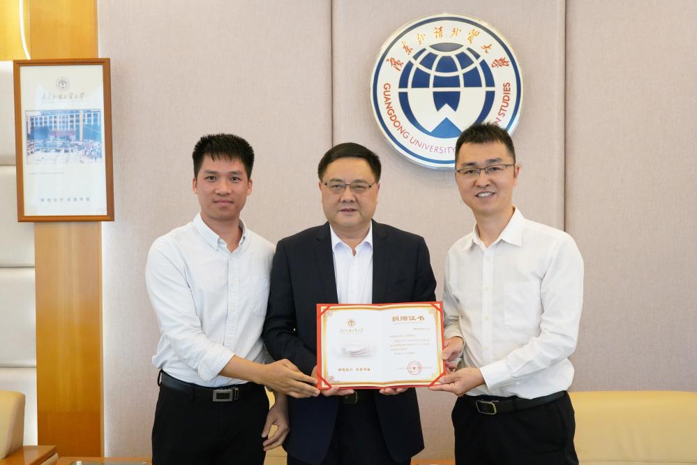 石佑启对热心校友为学校环境美化做出的贡献表示感谢并颁发捐赠证书。石佑启表示,广外是广外人的广外,情系广外,共建美好校园,这是所有广外人的追求;毕业的校友心系母校,为母校作贡献,这种精神和情感对于在广外学习工作的广外人是一种激励;石佑启期待并欢迎更多校友常回母校交流学习。