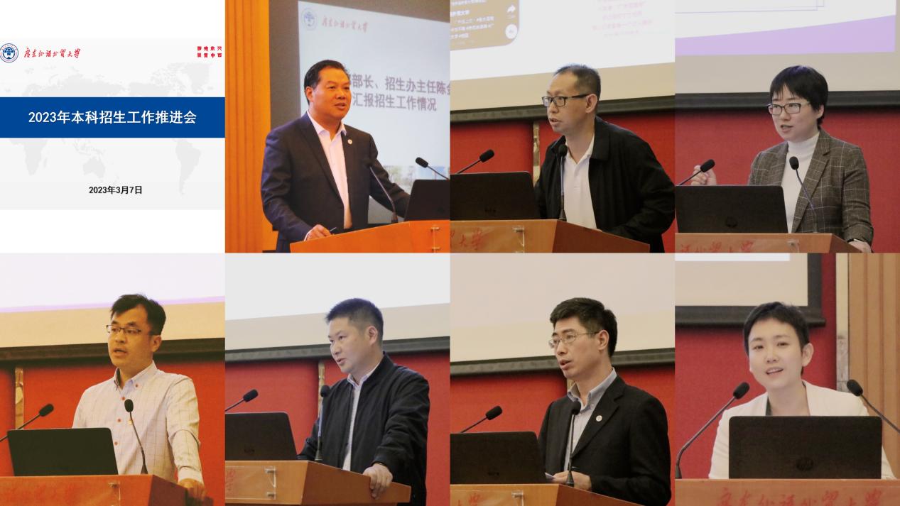 会上,教务部部长、招生办主任陈金诗,宣传部部长申明浩,学工部部长国佳,校团委书记刘郎,校友发展处处长肖锋,金融学院党委书记徐昶斌和翻译学院副院长王巍巍,分别从寒假以来招宣工作进展以及下一步工作计划作了详细汇报,并对今后的招生宣传工作提出宝贵建议。