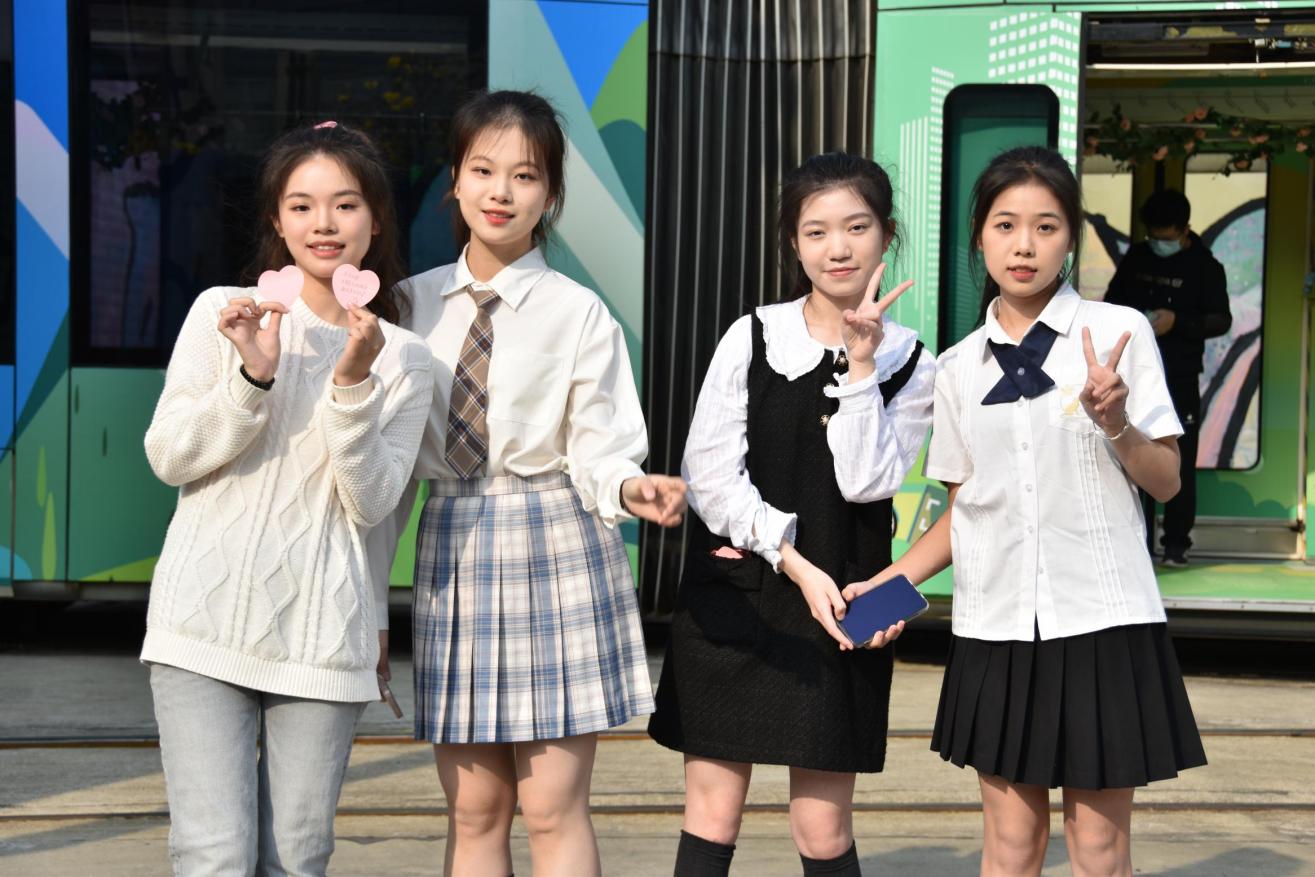 本网讯 广州塔下,明媚的阳光伴随着浪漫的“青春号”有轨列车,穿过车水马龙的繁华闹市,驶过春意黯然的珠江江畔,满载着热情与美好……这一切都成为了花城一道靓丽风景线。3月13日,由人民日报和共青团中央,共同开展的“我的青春主场”系列主题活动上线,我校选派23位学生参与“青春号”专列快闪视频录制。