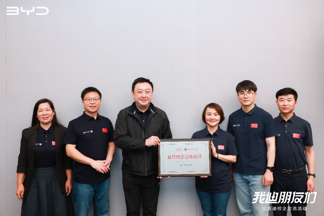 双方就毕业生招聘、实习基地建设、雇主品牌打造等方面进行深入交流。商英学院院长胡春雨、党委书记苏冬燕,比亚迪人力资源处办公室主任张萍、招聘经理蔡孟奇等参与活动。