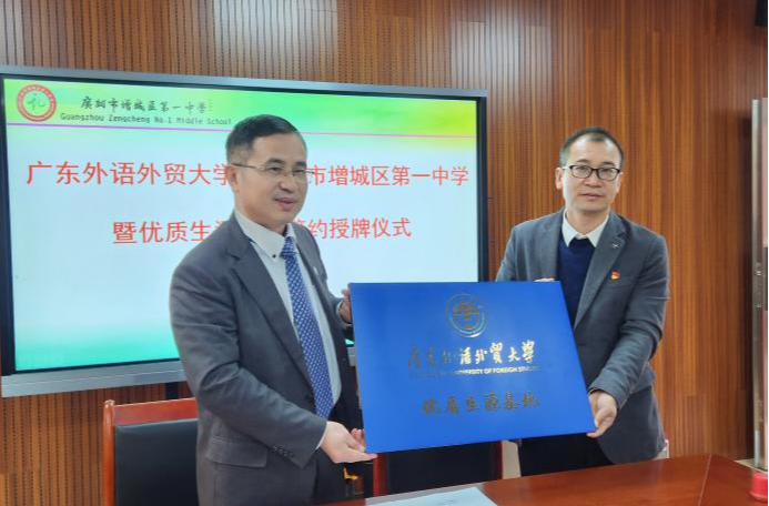 本网讯 3月28日,日语学院相关负责人一行到访广州市增城区第一中学,开展深入调研并签订“优质生源基地”协议和举行授牌仪式。