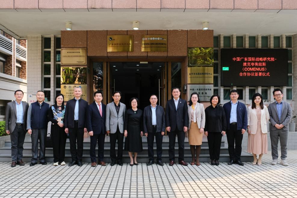 本网讯 近日,广东国际战略研究院与捷克夸美纽斯(Society of Comenius)签署合作协议。中国侨联副主席、广东公共外交协会副会长黎静,广州市侨联主席卞勇,中捷经贸文化交流协会会长李以森,我校党委常委、副校长刘海春出席签约仪式。