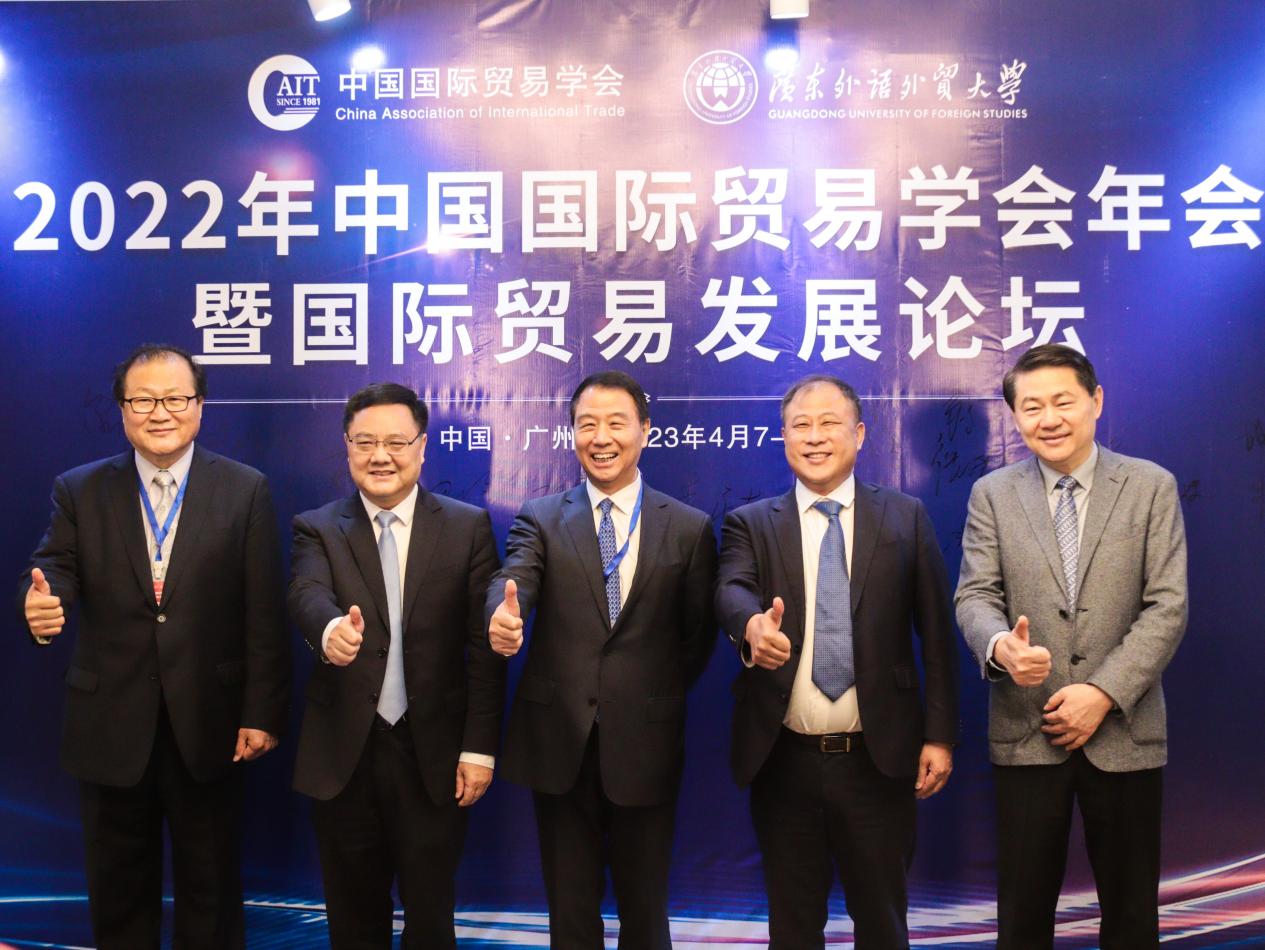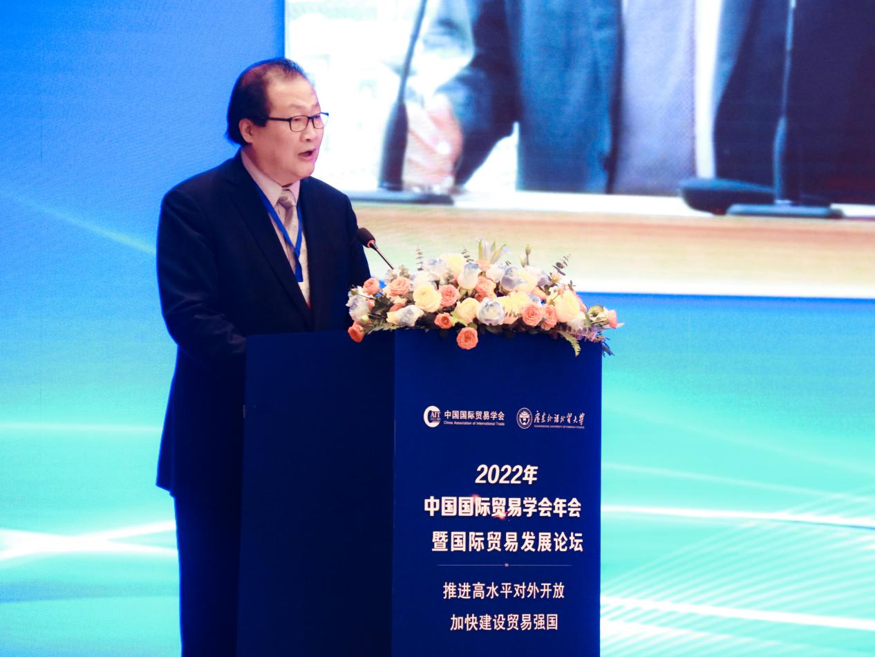 本网讯 4月8日,主题为“推进高水平对外开放,加快建设贸易强国”的2022年中国国际贸易学会年会暨国际贸易发展论坛在广州举行。商务部原副部长、WTO原副总干事易小准,国务院发展研究中心原对外经济研究部部长赵晋平等应邀做专题演讲。中国国际贸易学会会长金旭、副会长兼秘书长边振瑚、副会长李钢,我校党委书记、校长石佑启,副校长何传添出席会议。来自相关政府部门、各高校及研究机构的专家学者,部分省市国际贸易学会的负责人、国贸学会兼职副会长单位及会员单位代表、2022年中国外经贸发展与改革征文获奖代表等200多人参加会议。