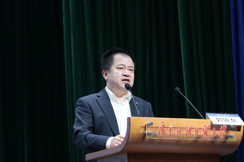 本网讯 4月11日下午,由学生工作部、教务部、校友事务与合作发展处联合主办的思政大讲堂第41讲在白云山校区六教报告厅举行。中国对外贸易中心对外联络处处长刘铨东(90级校友)回母校交流分享广外与广交会的故事。校党委副书记李云明会见刘铨东一行,我校师生400余人参加报告会。