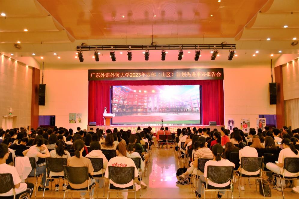 本网讯 为积极推动大学生志愿服务西部计划、广东大学生志愿服务山区计划,加强同学们对于西部计划项目的认识,鼓励更多广外学子以优秀志愿者为榜样,扎根西部,服务西部。4月13日下午,我校2023西部(山区)计划先进事迹报告会暨宣讲会在大学城校区学生活动中心多功能报告厅召开,校团委相关负责人、第七届研究生支教团新疆分队队长陈懿婷、西部计划全国项目志愿者伍云龙、乡村振兴行动志愿者杨慕冰出席宣讲会。大会通过线上和线下形式同步进行,超过1000名学生参加报告会。