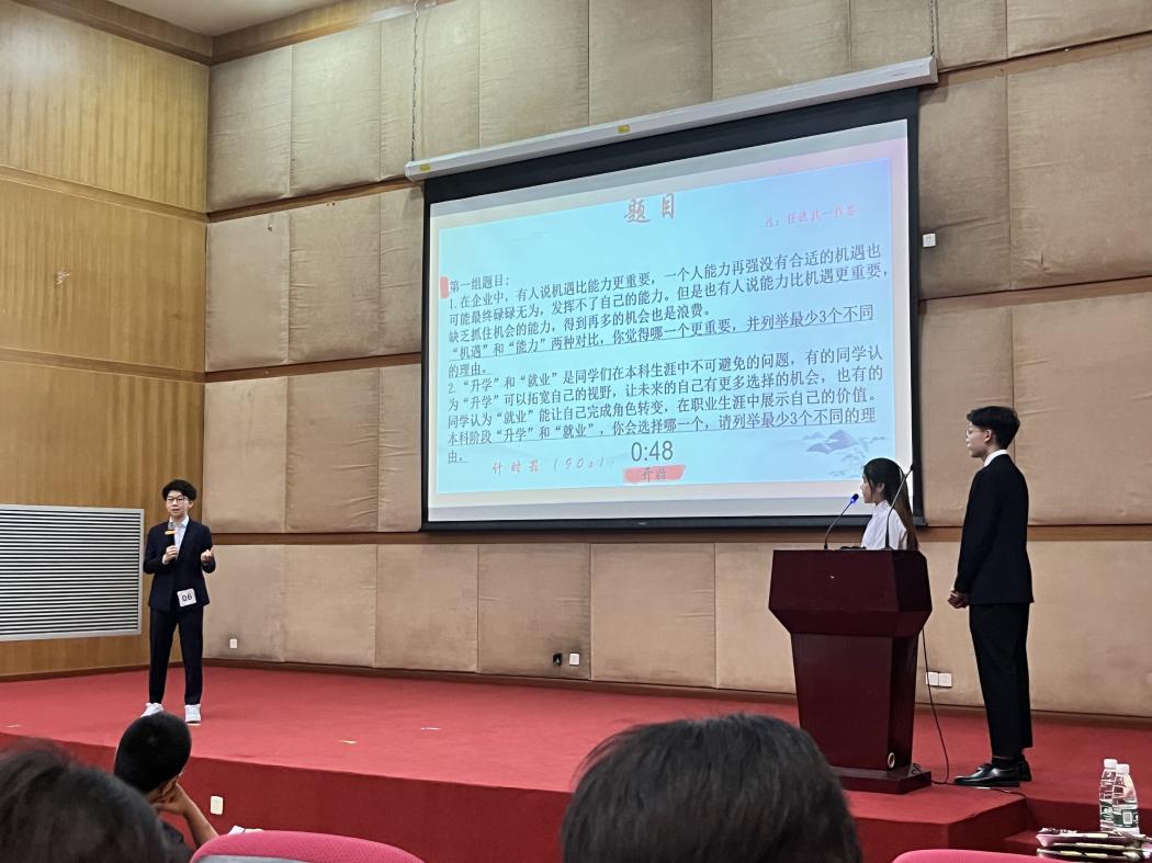本次大赛自4月启动以来受到广泛关注,共吸引我校1000余名学生报名,收到有效简历700多份,经过简历大赛、无领导小组面试、复赛一对一面试等环节遴选,最终有40名学生进入决赛。决赛设“个人风采展示”、“情景模拟即兴作答”、“HR面对面”等环节,为优秀选手搭建与企业HR沟通交流的平台。选手们通过在比赛中向企业展示个人能力和优势,接受目标企业的考核,经过激烈的角逐,我校21名学生在决赛现场斩获心仪的实习岗位offer。决赛现场有200多位学生观赛。