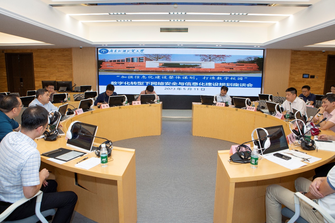 本网讯 5月11日上午,“卓越治理体系工程”专题“加强信息化建设整体谋划,打造数字校园”课题调研座谈会在白云山校区第六教学楼A301室举行。副校长焦方太带队参与调研工作。党办校办、保卫部、学生工作部、研究生院、校团委、发展规划部、教务部、科研部、人力资源部、国际交流部、财务与资产管理部、总务后勤部、招标采购中心、学生就业创业中心、现代教育技术中心等相关单位负责人参加座谈会。