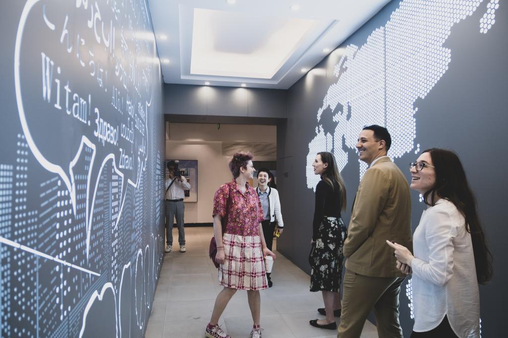 外交官一行参观了校史馆、同声传译实验室及图书馆。在校史馆,讲解员从广外的办学渊源、国际化特色、社会服务及优秀师生等方面进行介绍。同时,经过精心设计,学生社团在校史馆内为外交官一行带来包括乐器演奏、舞蹈、武术和多语种合唱等丰富多样的节目演出,充分展示学校青年学子的热情和风采,让来宾在浓厚的氛围中领略中华文化,推动中国和欧洲文化交流更上一层楼。
