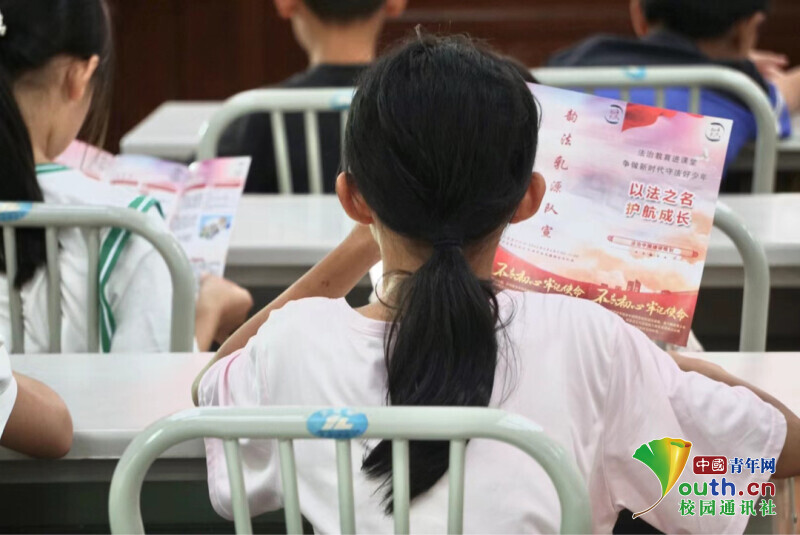 青少年在认真阅读广外法援实践队普法宣传册(本次活动获得中国青年网报道)