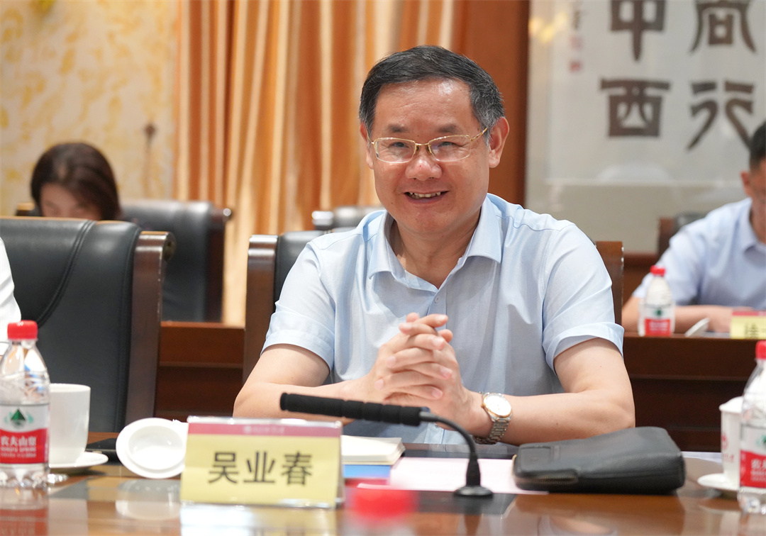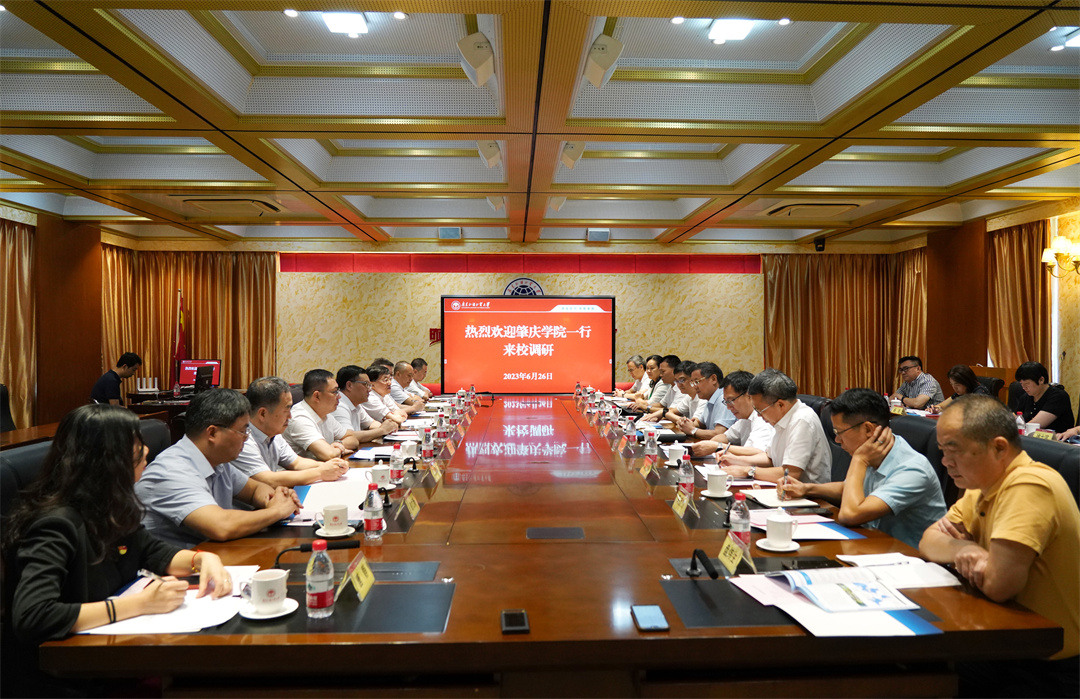 本网讯 6月26日,肇庆学院党委副书记、校长吴业春一行14人来我校调研交流。我校党委书记、校长石佑启在行政楼第一会议室会见来宾,两校就学科规划与建设工作、研究生教育工作及国际交流与合作工作开展座谈交流。肇庆学院党委副书记、工会主席谢冠华,副校长唐冬冬,副校长、研究生院院长胡文涛,广东工业大学帮扶工作队队长刘怡军;我校党委副书记李云明、副校长刘海春等出席座谈会。
