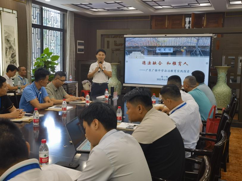全体学员实地参观了广东广雅中学、广州市真光学校。两所学校均是百年名校,在法治教育和德育教育方面均有着鲜明的特色和深厚的底蕴。学员们观看了两所学校的法治教育专题片,广东广雅中学副校长陈一鸣、广州市真光学校教务处主任陈笑参介绍了各自学校法治教育工作开展情况。