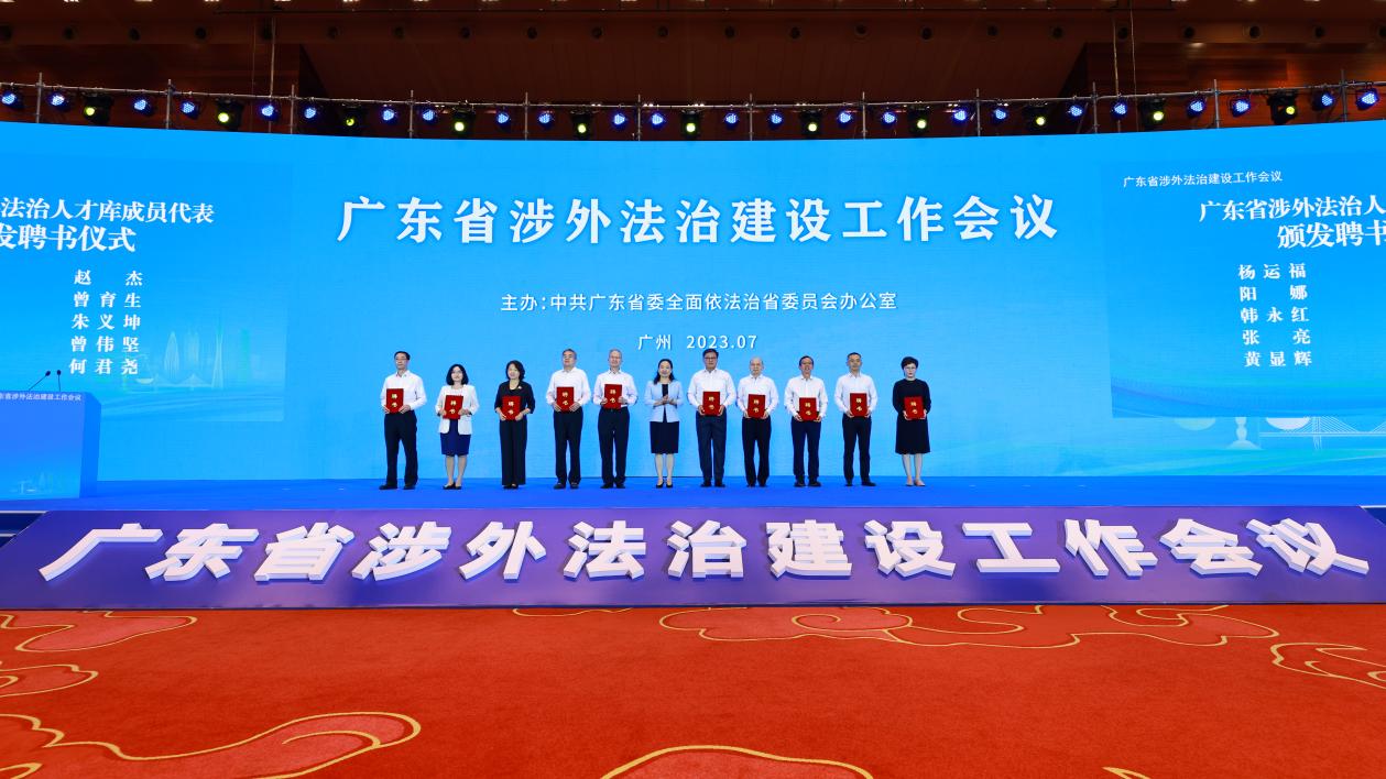 本次全省涉外法治建设工作会议和省法学会第九届理事会扩大会议还分别进行了首批广东省涉外法治人才、广东省法学会首席法律咨询专家、广东省习近平新时代中国特色社会主义思想研究中心广东省法学会研究基地特约研究员的选聘。我校石佑启、陈小君被聘为广东省法学会首席法律咨询专家。石佑启、陈小君、陈云良、王荣珍被聘为广东省习近平新时代中国特色社会主义思想研究中心广东省法学会研究基地特约研究员,石佑启为研究基地首席专家,陈小君为团队核心成员。韩永红被聘为广东省涉外法治人才。