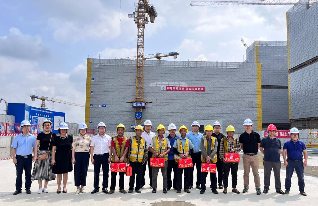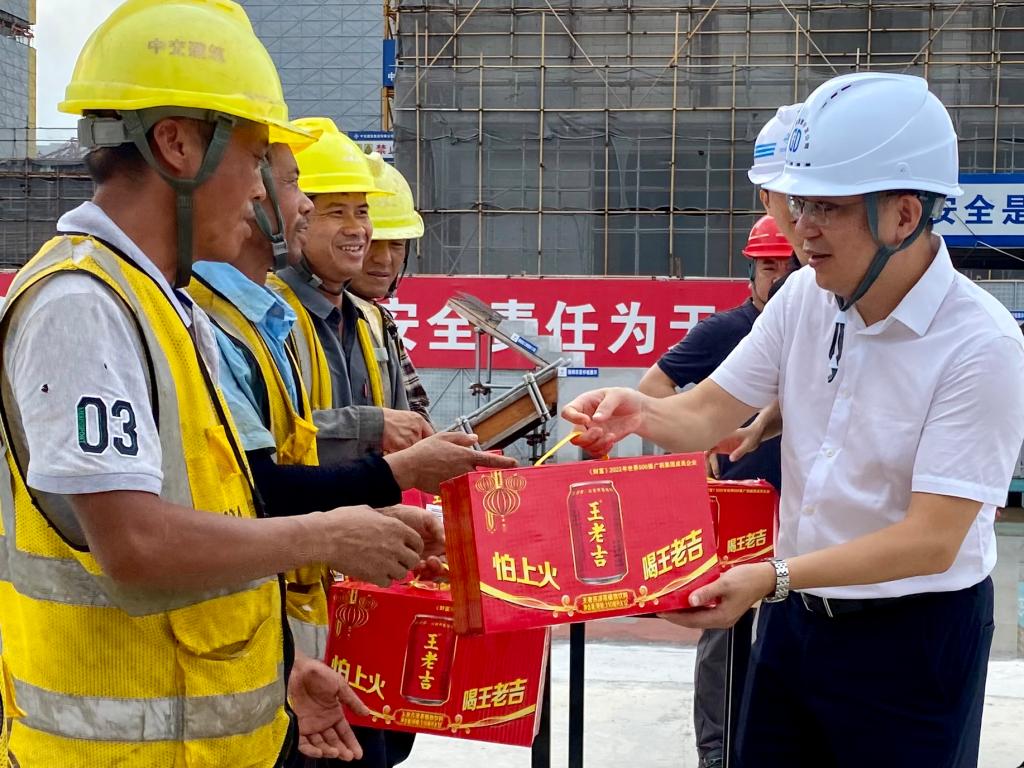 本网讯 8月14日上午,我校副校长、黄埔研究院院长刘海春率队来到知识城新校区建设工地现场,看望和慰问在高温下辛勤工作的一线员工,为他们送去防暑降温饮品。黄埔研究院、知识城校区管委会(筹)办公室、基础建设部等部门负责人参加慰问活动,通过暑期加快推进新校区建设,力求实现新校区建设的高质量发展。