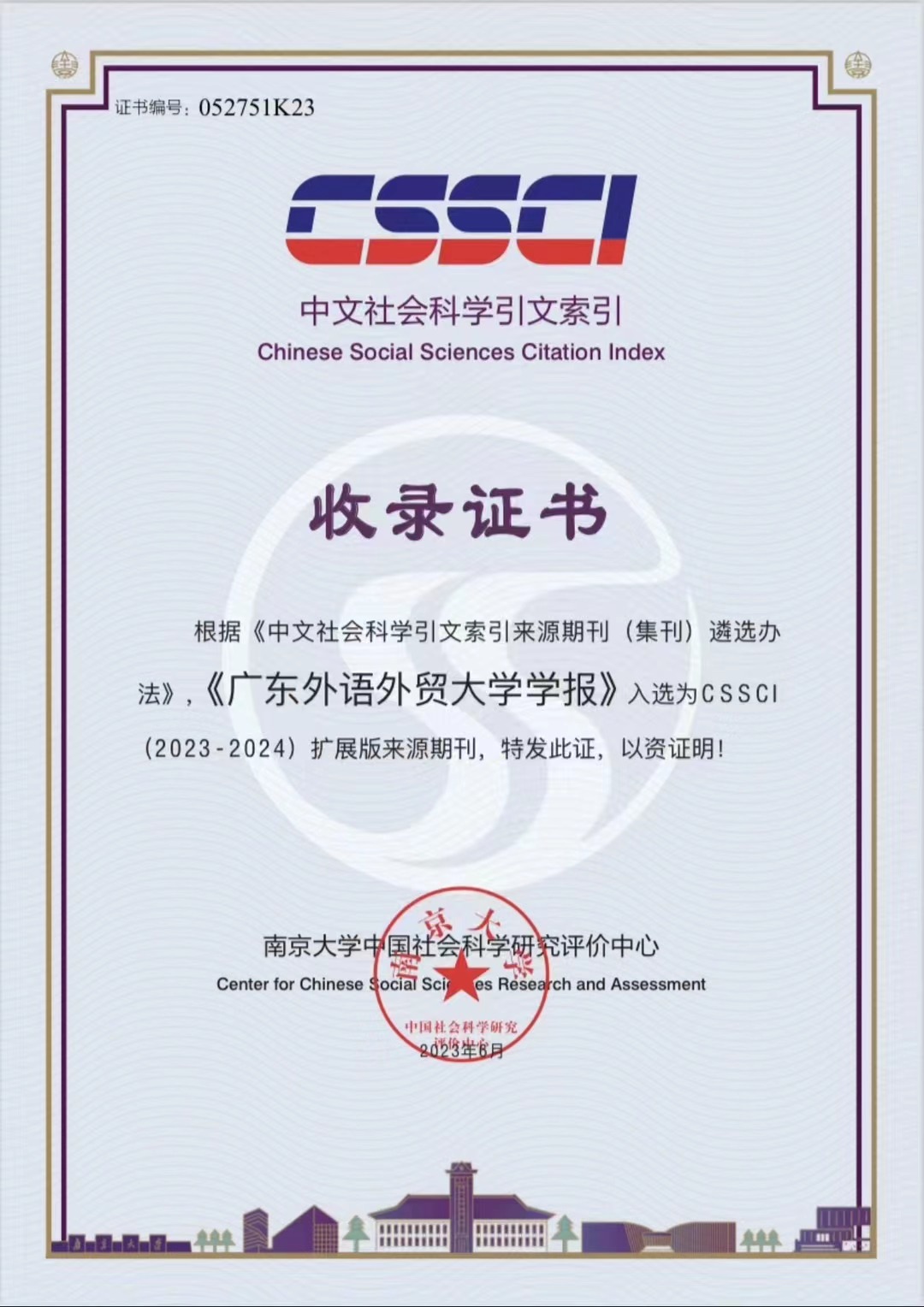 本网讯 近日,根据南京大学中国社会科学研究评价中心最新发布的目录显示,《广东外语外贸大学学报》入选CSSCI(2023-2024)扩展版来源期刊,这是学报自2019年第4期顺利转型以来所取得的重大历史突破。