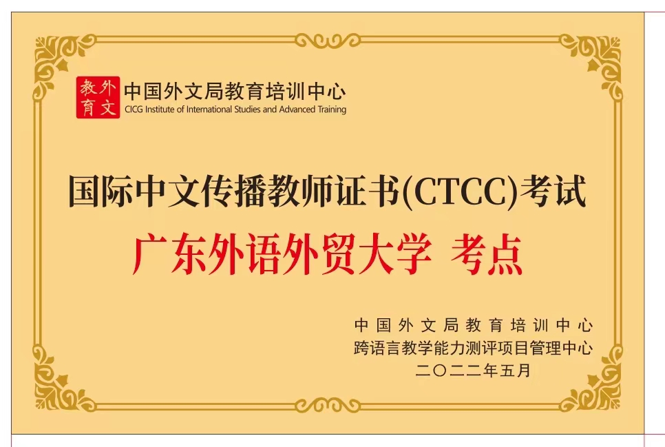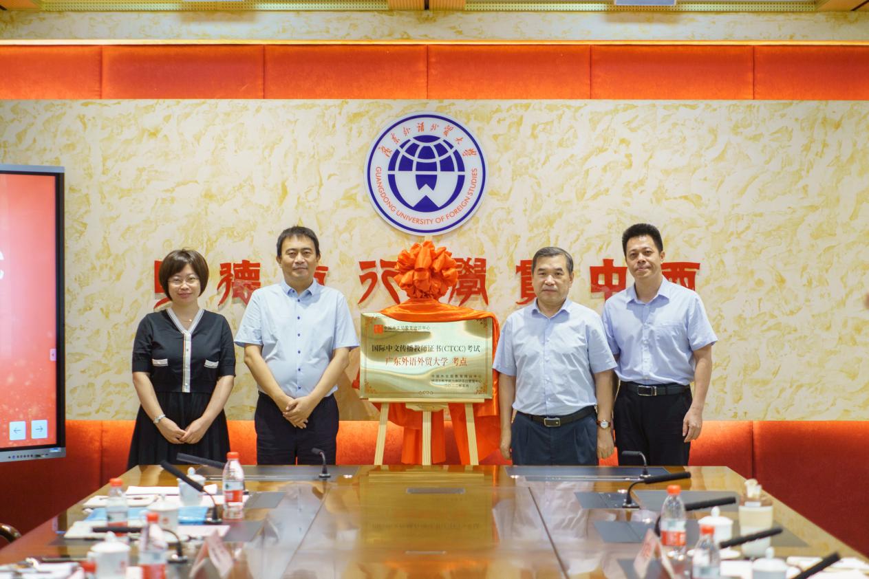 本网讯 经中国外文局教育培训中心审批,我校成为国际中文传播教师证书考试的全国首批考点之一。9月20日上午,在我校白云山校区行政楼第一会议室举行国际中文传播教师证书考试广东外语外贸大学考点揭牌仪式。中国外文局教育培训中心副主任、国际中文传播教师证书考试办公室主任韩立强等领导莅临我校,我校党委常委、副校长焦方太,考试中心、教师发展中心相关人员参加。