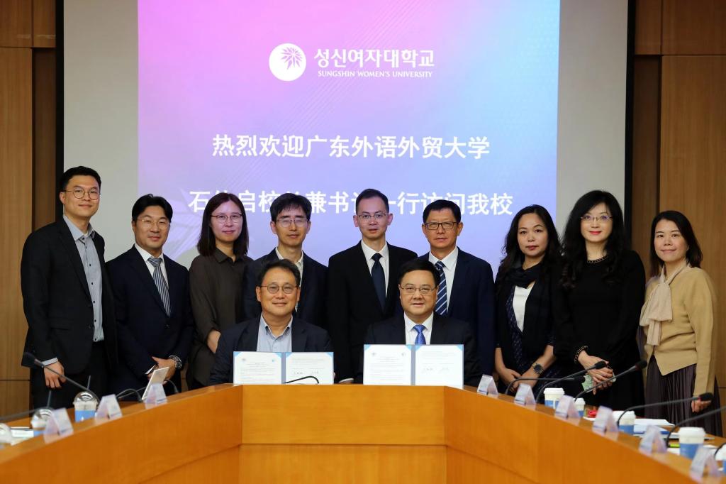 访问韩国诚信女子大学期间,该校校长李成根、国际处处长李炯敏等会见我校代表团。李成根向石佑启等一行的到来表示热烈欢迎,并简要介绍了诚信女子大学的概况。诚信女子大学与广外开展合作以来,顺畅有效,每年均有学生的交流,李成根希望两校在更多领域开展深度合作。石佑启表示,广外高度重视教育国际化,与全球60个国家和地区的492所高校和学术机构建立了合作关系。广外积极推动学科交叉融合发展,取得了一定成效。他希望与诚信女子大学开展更多学科交叉方面的合作,推进两校学科建设和人才培养工作。随后,石佑启与李成根签署了两校的教师交流项目合作协议。