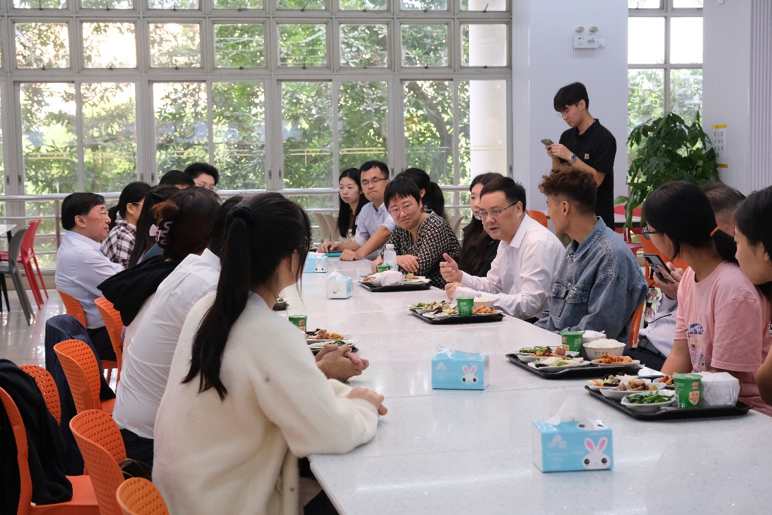调研走访结束后,石佑启在第二饭堂与11名学生代表共进午餐并进行了亲切交谈,关心学生学习生活情况,倾听师生心声。石佑启鼓励同学们积极为学校办学提出有益建议,广泛参与到学校事业发展大局,共同推动学校建设与发展。