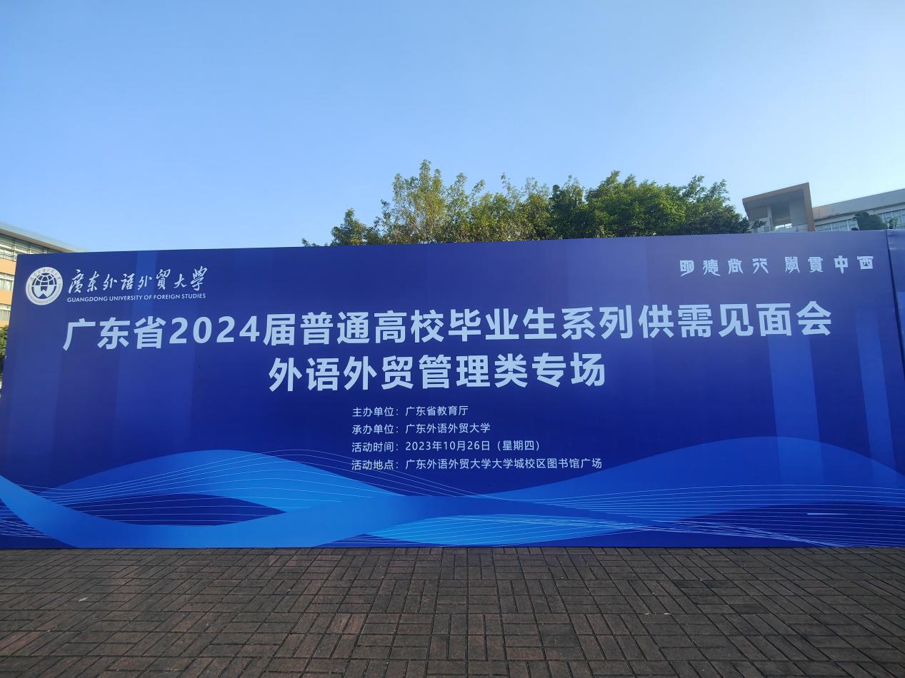 本网讯 10月26日,由广东省教育厅主办、我校承办的广东省2024届普通高校毕业生系列供需见面会(外语外贸管理类专场)在我校大学城校区图书馆广场举行。