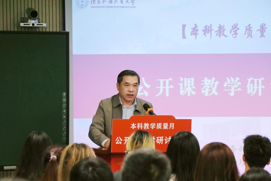 焦方太在活动中致辞。他指出,“本科教学质量月”系列活动作为学校长期坚持的教学活动,发挥着促教、促学、促改、提质的积极作用,本次公开课教研活动是今年本科教学质量月的重要环节。他对教师教学提出了三点要求:要坚守教书育人的职责、坚持以学生为中心的原则、坚定高质量发展的标准。对于课堂教学,他特别指出要坚持高标准、严要求,坚决淘汰“水课”,全力打造“金课”。