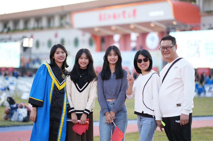 本网讯 金秋时节,重逢有期。11月18日下午,白云山校区综合体育场格外热闹温馨,学校在58周年校庆之际郑重兑现承诺,为2020届、2021届毕业生补办了一场盛大的学位授予仪式。4200余名校友跨越山海,再聚云山,与母校“双向奔赴”,共赴这场青春之约。校党委书记石佑启,校长闫相斌,校领导、主礼教授为毕业校友拨穗授礼并合影留念,寄语同学们不忘广外路、坚守广外心、赓续广外情,续写更加精彩的人生华章。