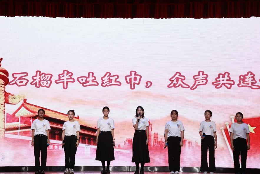 诗朗诵《石榴半吐红巾,众生共连锦绣》,赞颂了始终团结一心御外敌、众志成城齐奋斗的各族人民。朗诵饱含深情,振聋发聩。在结尾处,各位朗诵者别出心裁,用家乡方言为祖国献上祝词,用不同的语言,以相同的炽热血脉,点燃璀璨民族团结的色彩。