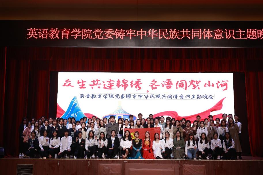 本网讯 11月16日晚,由英语教育学院党委主办,学生党建工作小组承办的“众声共连锦绣,各语同贺山河”铸牢中华民族共同体意识主题晚会于大学城校区学生活动中心顺利召开。
