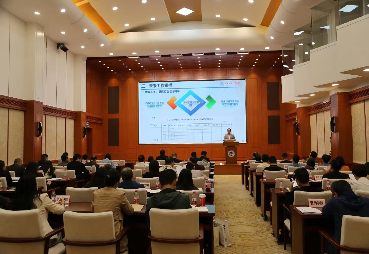 闫相斌指出,目前招生虽面临严峻挑战,但我们要保持战略定力,坚定发展的信心、突围的决心和实干的耐心,明确方向,走好自己的路。他强调,要提高站位,深刻认识国家和广东深化高水平对外开放给广外带来的特殊机遇,深刻认识我们自身在专业内涵建设和招生宣传工作等方面存在的差距。他要求,全校各单位要共同努力,加大外省招生宣传力度,做实做细省内招生宣传工作;要以创新为引领,推进专业优化调整,促进招生与专业发展的良性循环;要优化人才培养方案,推进专业课程建设;要深化国际合作,引领专业特色发展;要以需求为导向,优化招生工作机制,提高招生精准度、招生参与度和招生吸引度;要以效能为重点,形成招生宣传合力,增强宣传增值效应。