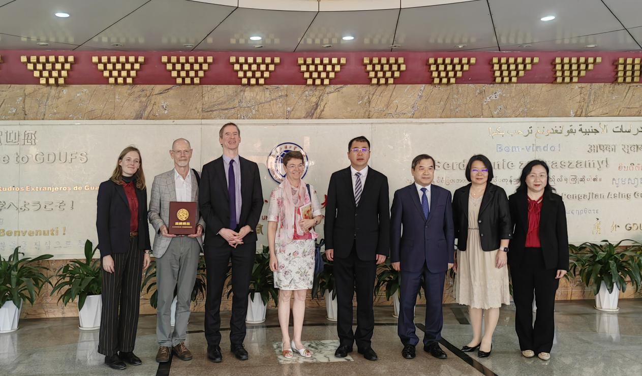 闫相斌对代表团的来访表示欢迎,并对我校国际化办学特色、德语学科建设情况等详细介绍。他指出,我校德语专业是我国首批国家一流专业建设点,建系历史悠久,人才培养成绩显著,是华南地区最大的德语本硕博学科点。学校重视与德国高校、机构等交流并开展了一系列卓有成效的合作。他表示,此次傅融大使一行来访,为我校高等教育事业发展和人才培养带来新机遇、提供新动力。未来,在德国驻华大使馆的关心与支持下,我校将继续发挥中德教育文化交流的纽带作用,深化与德国高水平院校间高层次、多领域的合作,在师生互访、学术研究、学科合作等领域实现新突破,培养更多适应时代需求的高素质德语人才,为促进中德两国人文、经贸交流作出更大贡献。
