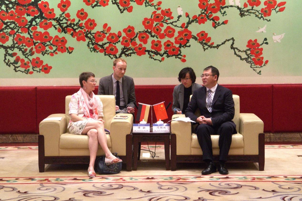 傅融对我校的欢迎表示感谢,并对我校在德语人才培养以及推动两国间文化交流方面的贡献表示赞赏。她指出,人才是推进德中两国合作的重要基础,教育在其中发挥有力作用。德国驻华大使馆愿做德中高等教育合作的桥梁,加强德国语言和文化推广,促进两国高校师生之间的对话和交流,推动德中人文、经贸交流再上新台阶。