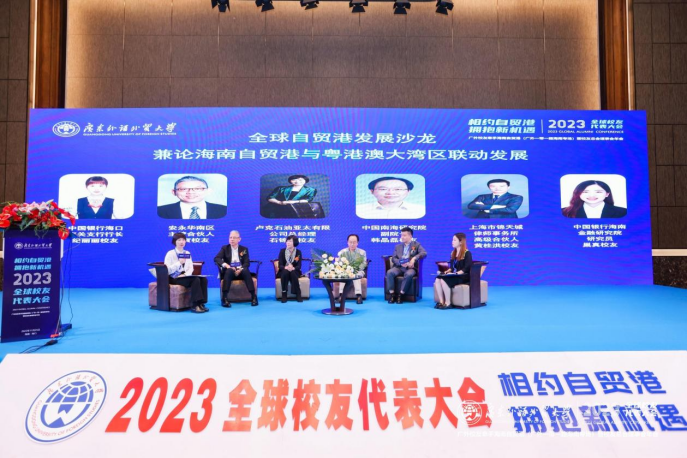 随后是论坛校友沙龙环节,卢克石油亚太有限公司总经理石锦波校友、中国南海研究院副院长韩晶磊校友、上海市锦天城律师事务所高级合伙人黄桂洪校友和安永华南区主管合伙人黄寅校友四位广外优秀校友受邀,分别从他们各自的领域和角度,分享对“全球自贸港发展沙龙——兼论海南自贸港与粤港澳大湾区联动发展”主题的真知灼见。四位校友发言切中肯綮,对海南自贸港的发展前景展开热烈讨论,峰会在智慧的碰撞、思维的交流中落下帷幕。
