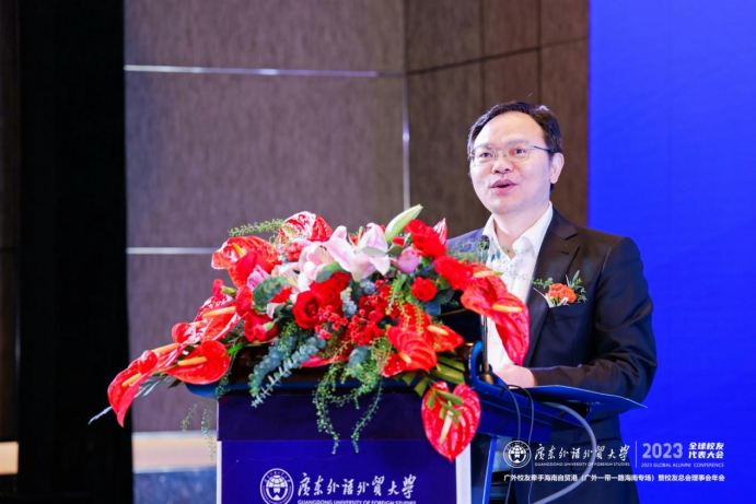 我校副校长刘建达教授代表广外向与会的领导及校友代表致以亲切问候,并对为此次活动无私奉献的校友们表达衷心感谢。刘建达指出,得益于《海南自由贸易港建设总体方案》的颁布,海南岛成为投资兴业的热土,呼吁全球广外人把握机会,发挥广外所能,积极为建设有中国特色的海南自由贸易港作出广外贡献。刘建达强调,自共建“一带一路”倡议提出十年来,广外坚持培养服务国家战略的高层次人才,持续提出广外方案,贡献广外智慧。他殷切期望各位广外校友借海南自贸港和粤港澳大湾区的发展机遇,积极融入国家发展战略,在各行各业发光发热!