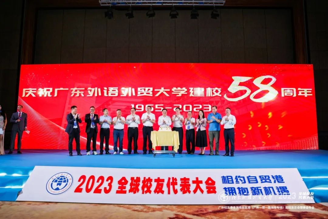 当天适逢广东外语外贸大学建校58周年生日,全球校友代表为母校共同庆生。石佑启书记、闫相斌校长与校友们一道点亮生日蜡烛,共唱校歌,祝愿母校校运昌隆,也祝全球广外人眼里有光,脚下有路,肩上有责,未来可期。