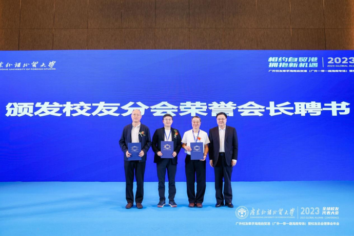 本网讯 11月25日,“相约自贸港 拥抱新机遇”——广外校友牵手海南自贸港(广外一带一路海南专场)暨校友总会理事会2023年年会在海口隆重举行。本次活动由广东外语外贸大学校友总会主办、海南校友会承办。