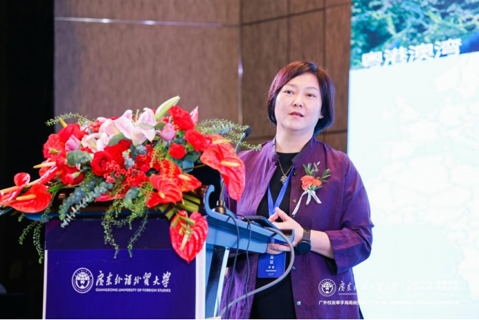我校黄埔研究院执行院长李青教授就“粤港澳大湾区发展趋势与展望”进行主题发言。李青表示,今年是习近平总书记提出共建“一带一路”重大倡议十周年,而粤港澳大湾区作为“一带一路”建设的重要支撑,也是广外的发挥自身优势的重要舞台,未来广外将持续深入贯彻党的二十大战略部署,落实“十四五”规划要求。李青从发挥科研智库优势、国际化办学优势、学科专业优势等角度,多方面阐述了广外在为粤港澳大湾区建设提供战略支撑、平台支撑、人才支撑所能做的贡献。