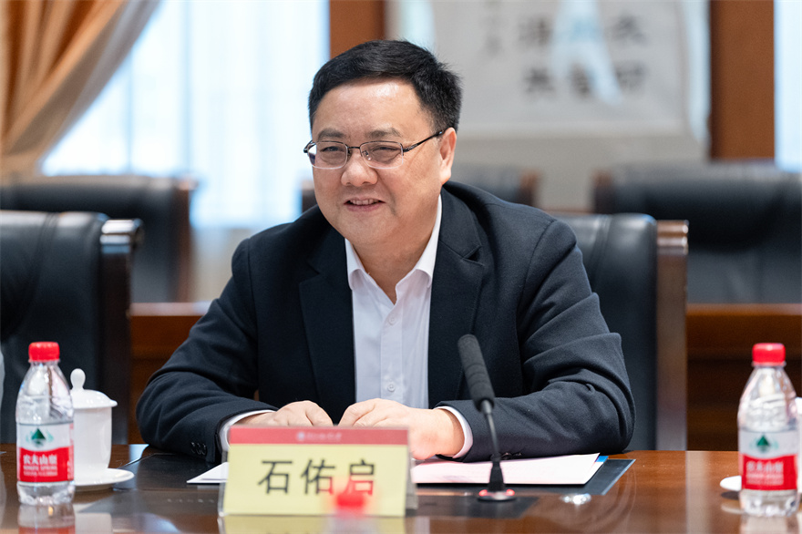 石佑启向白黎一行的到来表示欢迎,他简要介绍了我校的历史沿革和发展情况。石佑启指出,近年来,广外在学科建设、人才培养等方面不断取得新突破,形成了外语学科与非外语学科融合发展、“双轮驱动”的发展格局。通过不断聚焦国家重大战略需求,加快学科专业布局,培育区域国别学、中华文化国际传播、语言与人工智能、涉外法治、全球经济治理等新增长点,努力为广东省和国家发展贡献广外智慧和广外力量。希望和西安外国语大学通力合作、优势互补、资源共享,共同推进新时代背景下外语类院校高质量发展。