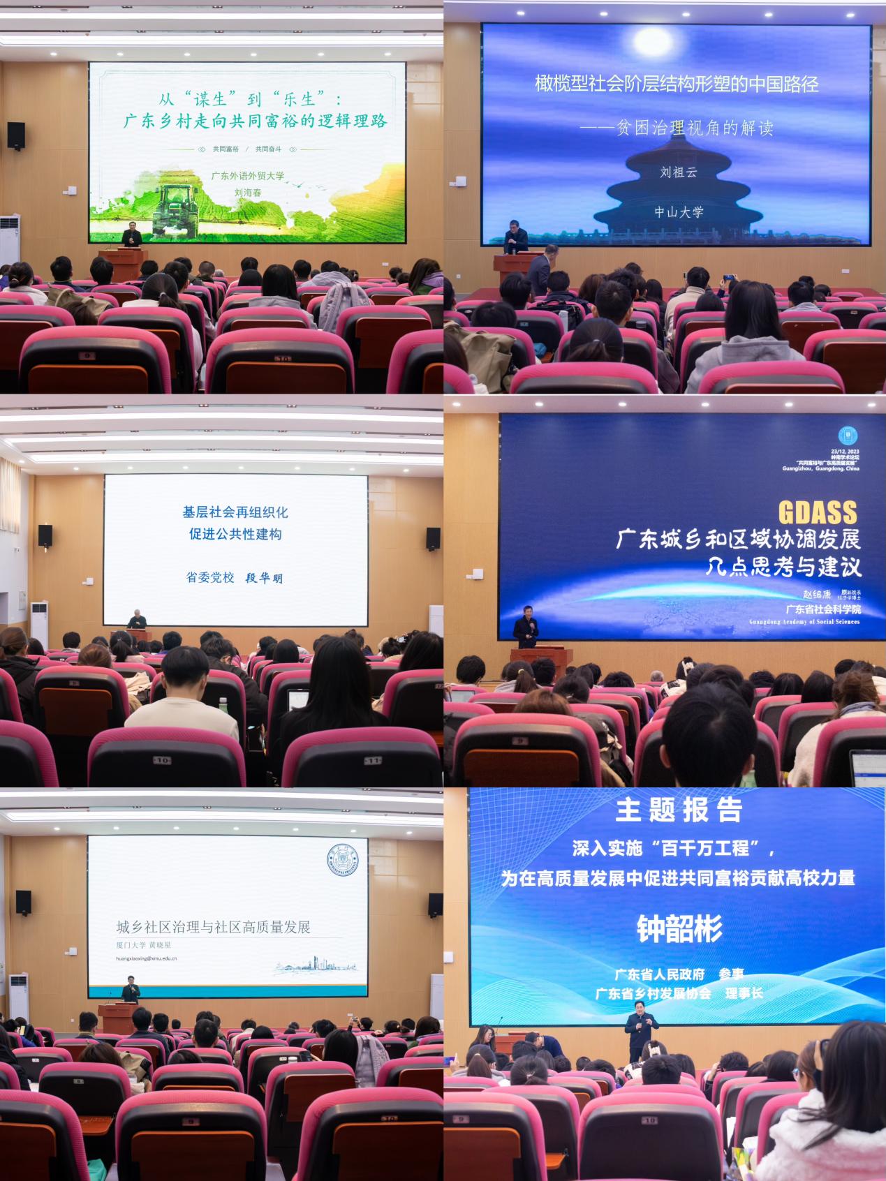 主题报告环节,广东外语外贸大学教授刘海春,广东省社会科学院原党组成员、副院长、二级研究员赵细康,中共广东省委党校教授段华明、文小勇,中山大学教授刘祖云,东南大学教授王宁,厦门大学教授黄晓星,广东省人民政府参事、广东省乡村扶贫开发协会理事长钟韶彬先后围绕“共同富裕与广东高质量发展”主题分享和交流了研究成果。主题报告由我院副院长费久浩主持。