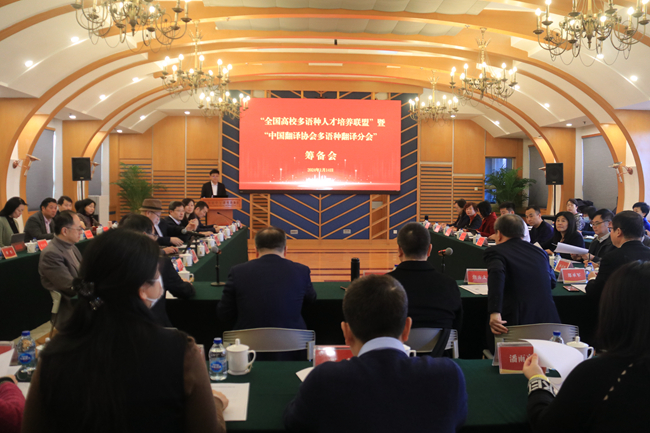 本网讯 1月14日,“全国高校多语种人才培养联盟”暨“中国翻译协会多语种翻译分会”筹备会在北京外国语大学举行。北京外国语大学、广东外语外贸大学、四川外国语大学、西安外国语大学、北京第二外国语学院、大连外国语大学等多所高校校领导和教务部门负责人、相关院系负责人,以及多所外国语学校校领导等80余人通过线上线下的方式出席会议。我校副校长焦方太出席会议并发言。