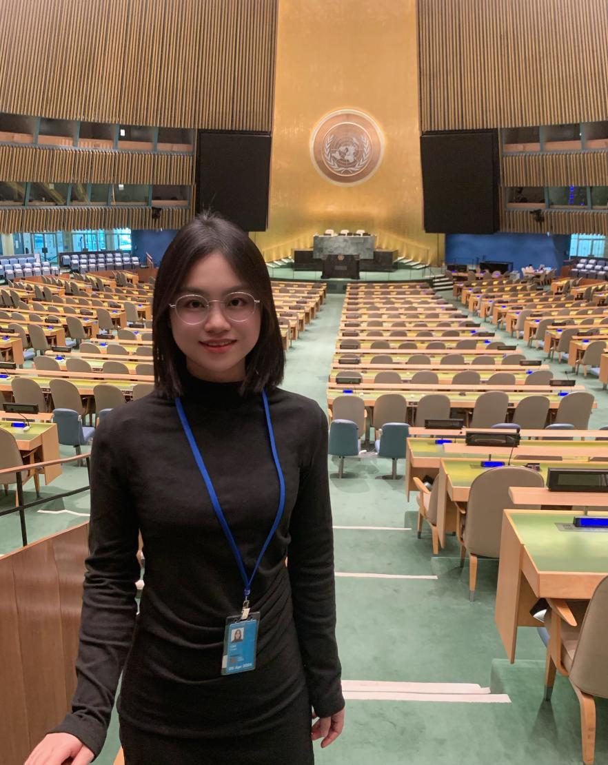 在新闻学院的中外新闻发言人与新闻发布实务这门课上,曹咏仪的期末作业是分析外交部发言人账号的高赞视频,她对耿爽大使卸任外交部发言人的告别视频印象最为深刻,发言中的最后一句话是“在此跟大家道别,我们后会有期”。曹咏仪从未想过,在联合国实习期间,她真的能与耿爽大使“后会有期”,并获得了一次与耿爽大使交流的宝贵机会。“本科生能来联合国实习不容易,希望以后还能够在大楼里见到你。”在交流的最后,耿爽大使亲切地勉励她,希望与她后会有期。这样一番话语使曹咏仪备受感动,也成了她职业发展的一大动力,让她更加坚定了自己日后将继续在联合国这个国际平台发光发热的愿望。